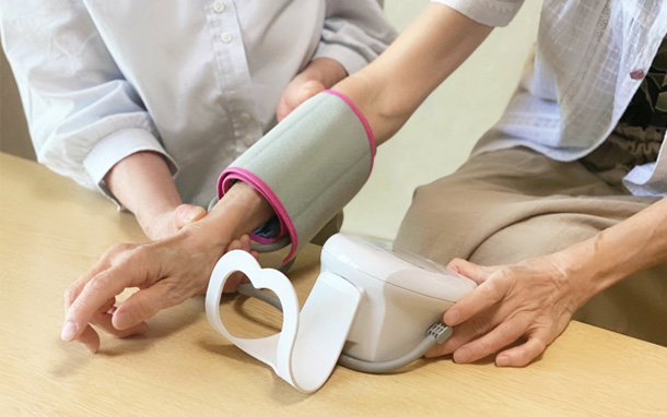 朝の挨拶をしながら居室をまわりバイタル測定を行います。