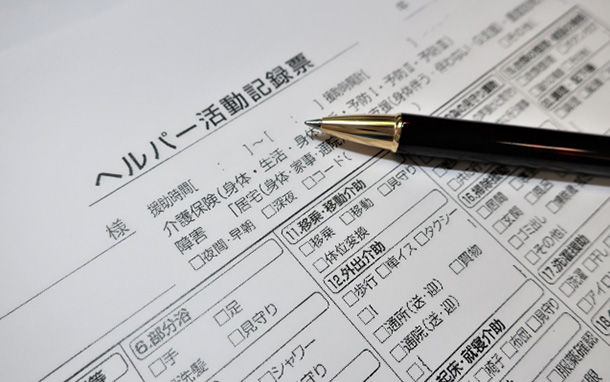 訪問時の状況やサービス内容を規定の書類に記入します。